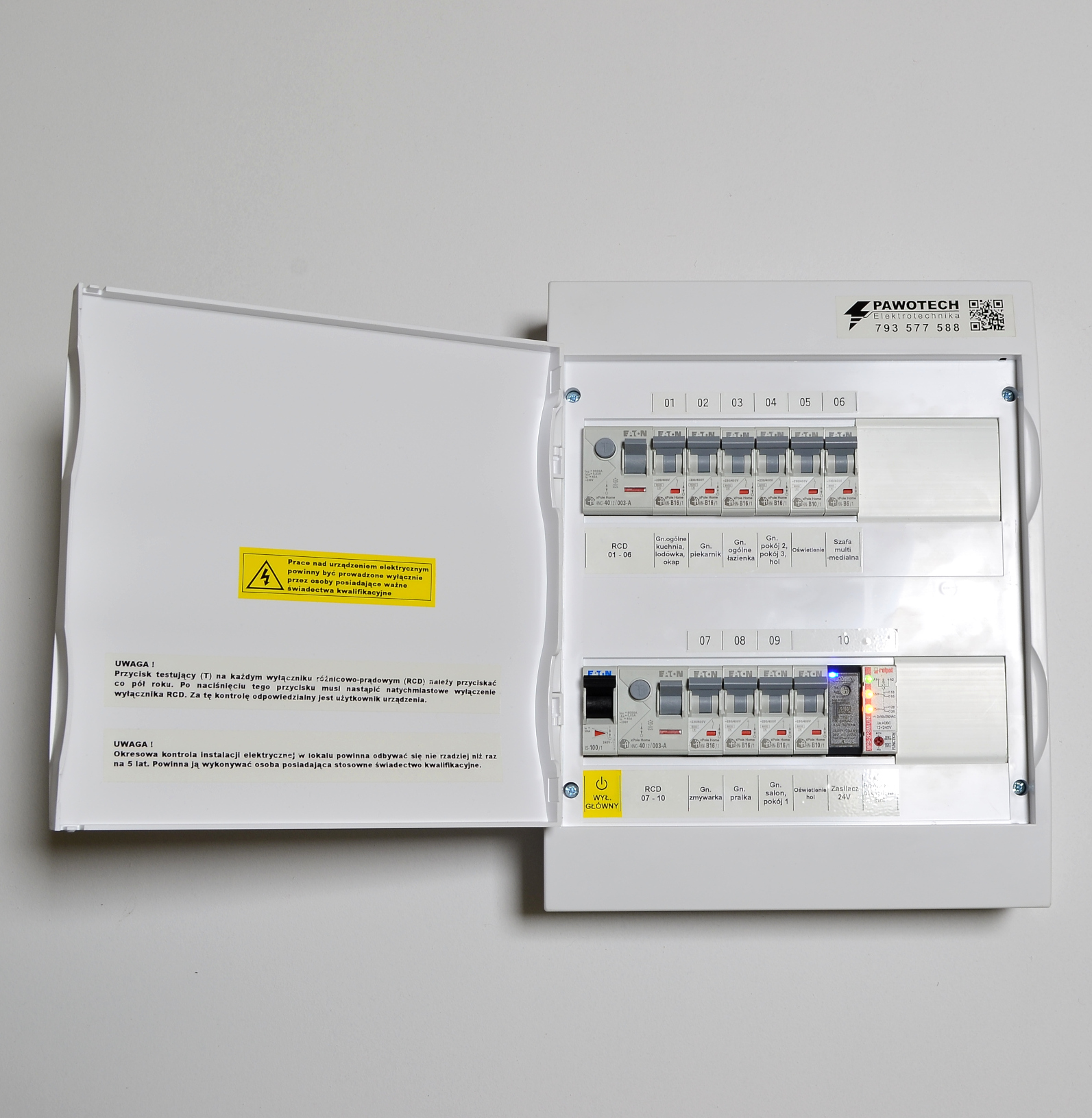 - Oznakowanie w rozdzielnicy przyspiesza późniejszą rozbudowę i lokalizację ewentualnych usterek w instalacji.